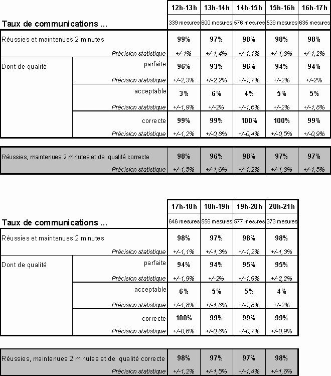 réussies et du taux de communications de qualité