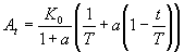 t est calculé par la formule : Kt est la valeur de l'actif en début d'année t, a est le taux de rémunération du capital et t est compris entre 0 et T-1 (KT = AT = 0). Cet amortissement incorpore un terme de rémunération