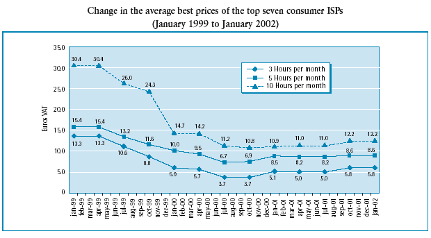 Change in Internet prices (January 1999-January 2002)