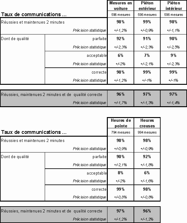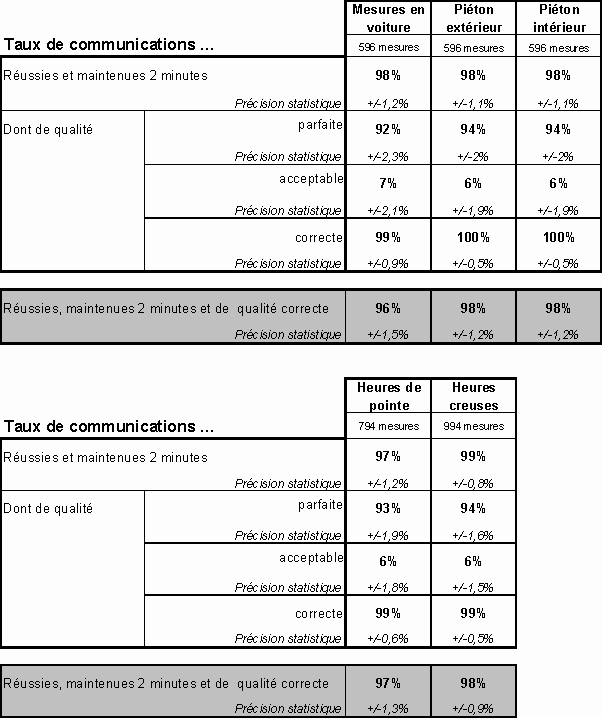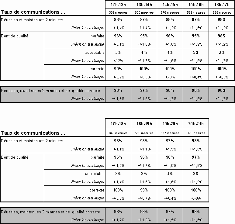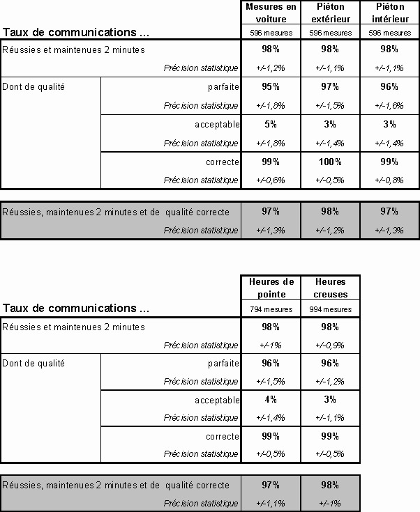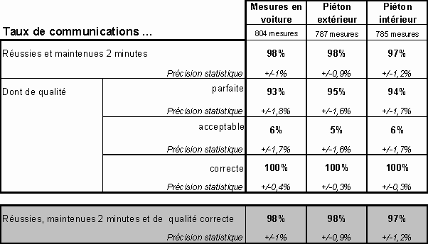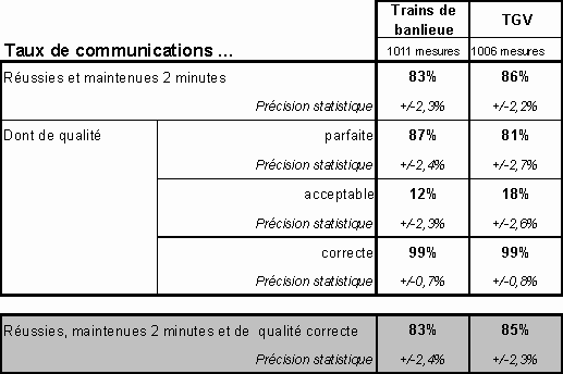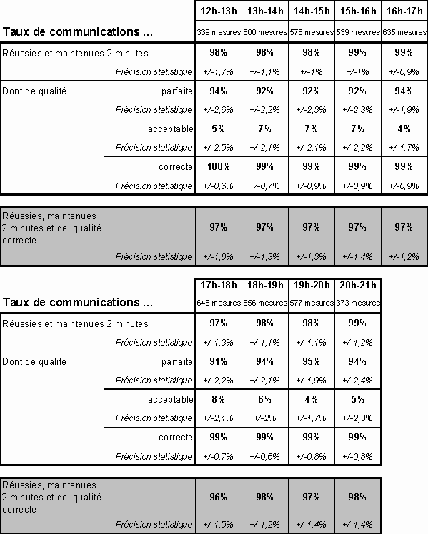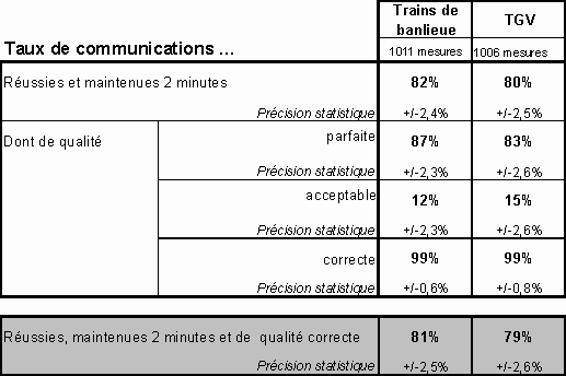 réussies et du taux de communications de qualité