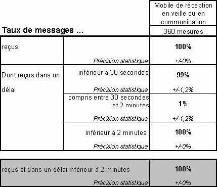 taux de messages reçus et dans un délai < 2min