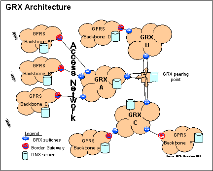 There are several ways of establishing the link between different mobile operators GPRS/IP networks: direct con-nection between mobile operators, indirect con-nection by the inter-mediary of the Internet and indirect connection by connection to GRXs (GPRS Roaming eXchange).