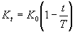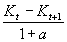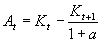 t est calculé par la formule : Kt est la valeur de l'actif en début d'année t, a est le taux de rémunération du capital et t est compris entre 0 et T-1 (KT = AT = 0). Cet amortissement incorpore un terme de rémunération