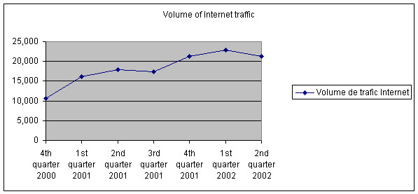 2.2 Key figures for the French market According to a number of sources (Association des fournisseurs d’accès, Association des opérateurs multi-services and France Telecom), we can estimate the number of active Internet subscriptions in France at end December 2002 at just over 9 million, an increase of 30% over 2001. The table below shows clearly the constant and strong growth in the number of paying Internet subscribers in France, in particular the number of high-speed subscribers in 2002.
