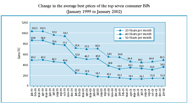 Change in Internet prices (January 1999-January 2002)