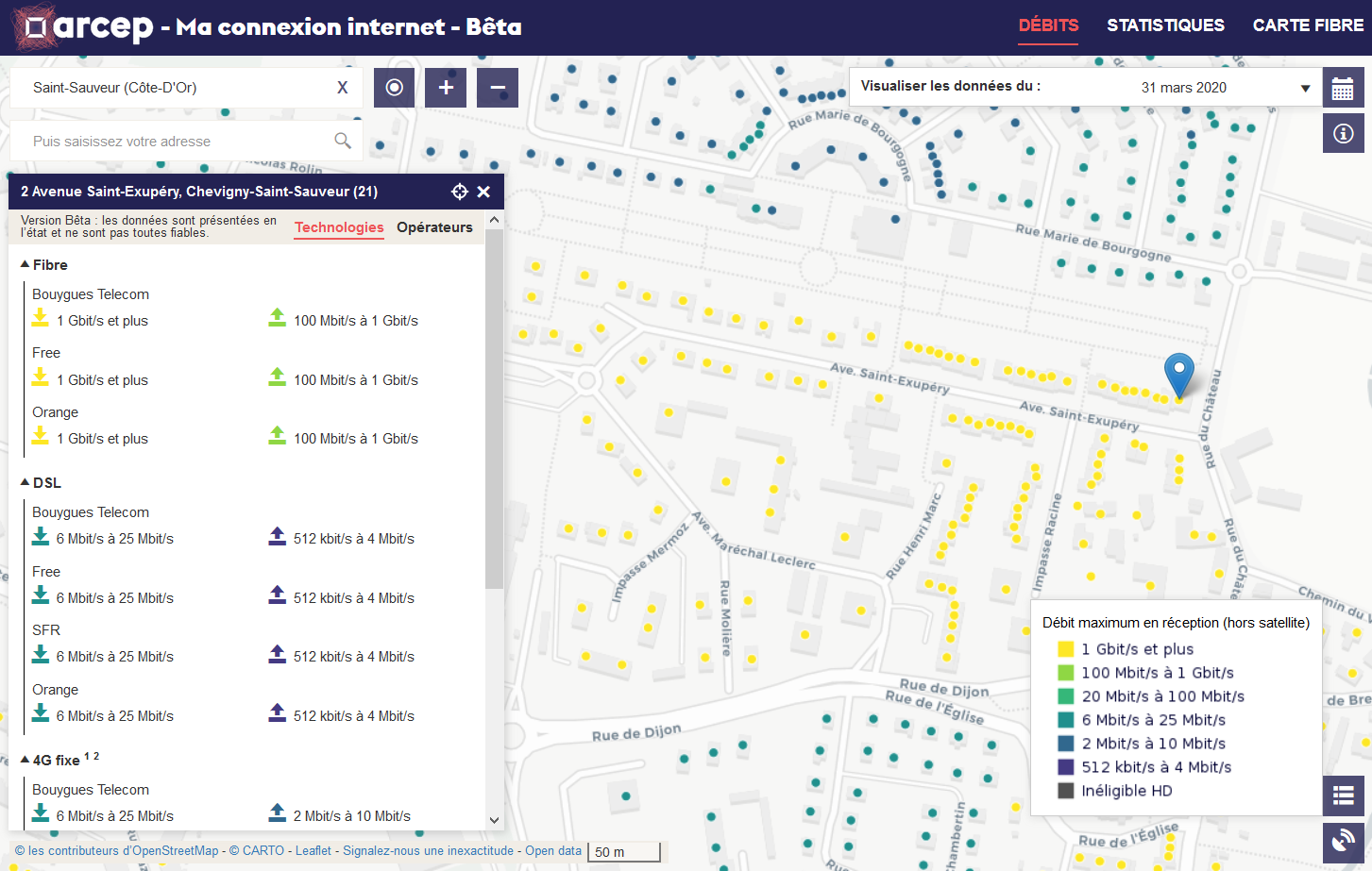 The ongoing work has made it possible to roll out a version of “Ma connexion internet” today that incorporates updated information (Q1 2020 data), the addition of a large number of local operators, enhanced map display features and more reliable data.