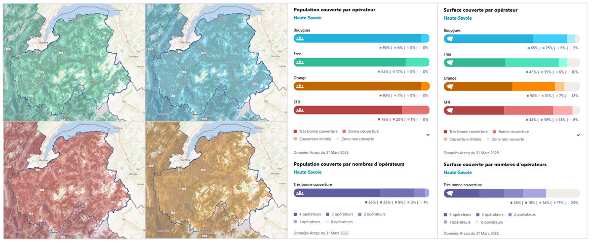 These new indicators can be viewed on “Mon réseau mobile” under “Coverage”. Below is an example for the Haute-Savoie: