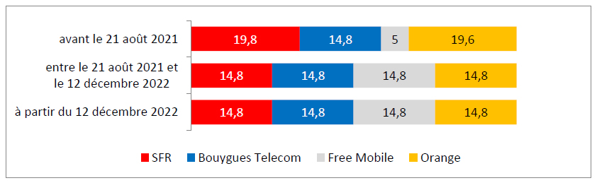 - 2.1 GHz band: Bouygues Telecom, Free Mobile, Orange and SFR will each be allocated a 14.8 MHz duplex starting in August 2021.