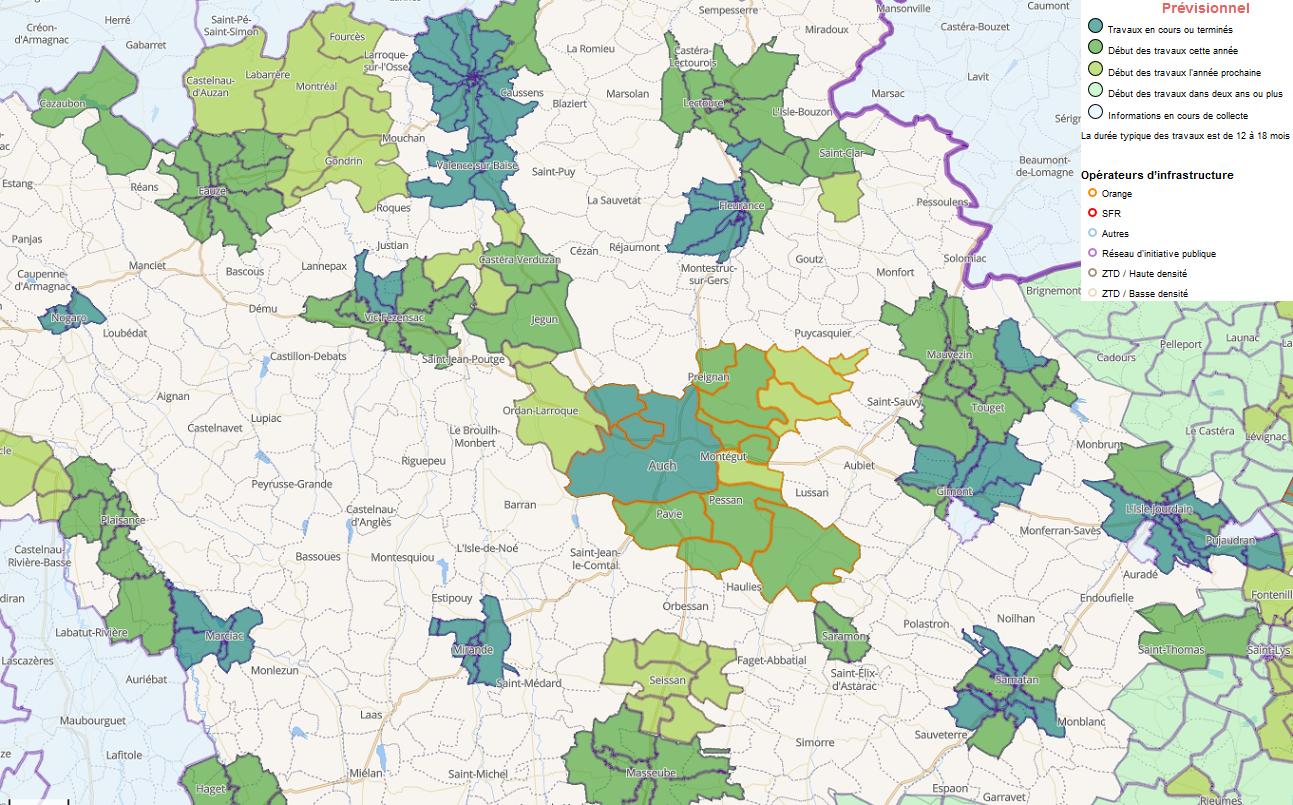 The site will be enhanced and updated periodically, as information is received from project owners. At the same time, Arcep is working on a tool for providing detailed information on fixed network coverage for all technologies combined, on an individual address level.